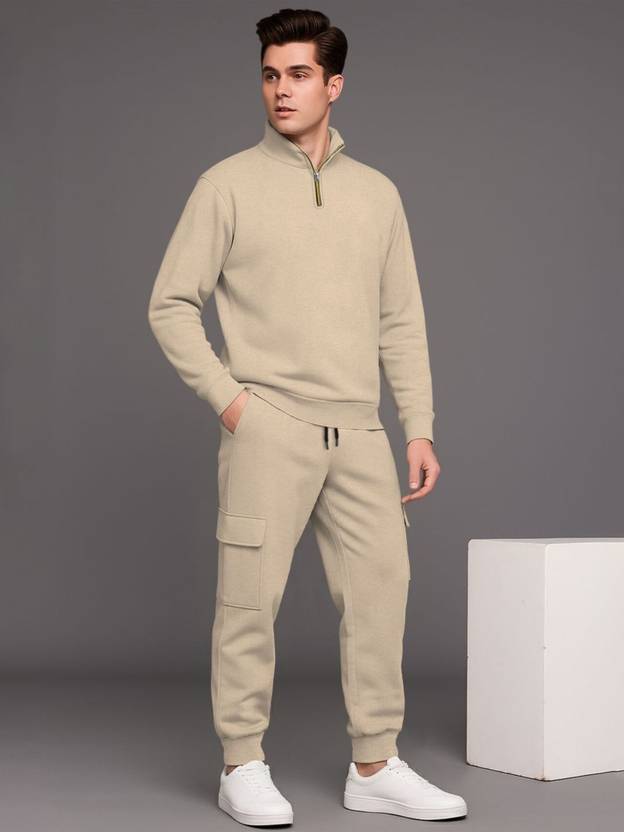 Stay on-trend and comfortable with this stylish TRIPR full sleeve Round Neck perfectly paired with baggy cargo pants. The Sweatshirt features a sleek zip-up neckline that adds a sporty, modern touch, while its relaxed fit ensures all-day comfort. The TRIPR cargo pants come with a loose, baggy silhouette and multiple utility pockets, offering the ideal combination of function and fashion. Whether you're heading out for streetwear-inspired looks, traveling, or enjoying a laid-back weekend, this outfit delivers a bold blend of contemporary style and everyday practicality - only from TRIPR.A Cargo plain baggy tracksuit typically consists of a loose-fitting, unadorned Sweatshirt and matching pants, usually made from soft, comfortable materials like cotton blends.