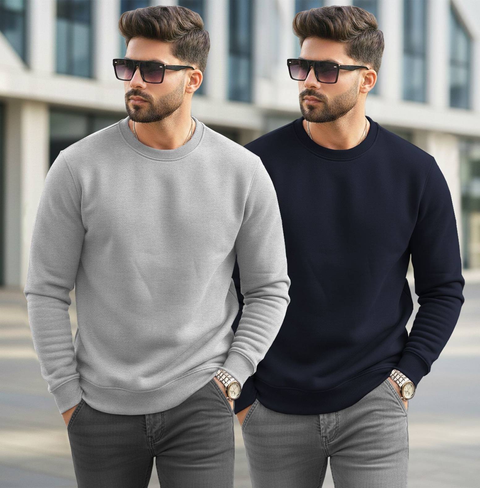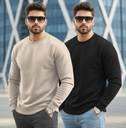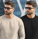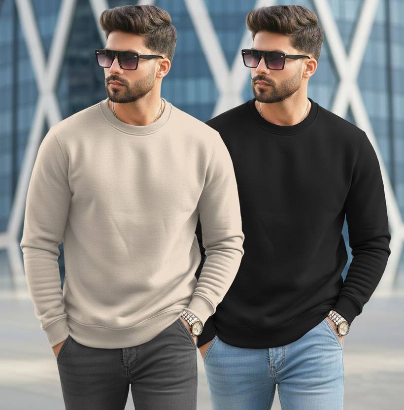 TRIPR Solid Round Neck Casual Men Beige, Black Sweater