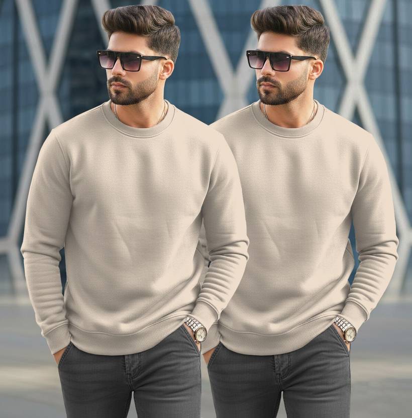 TRIPR Solid Round Neck Casual Men Beige Sweater