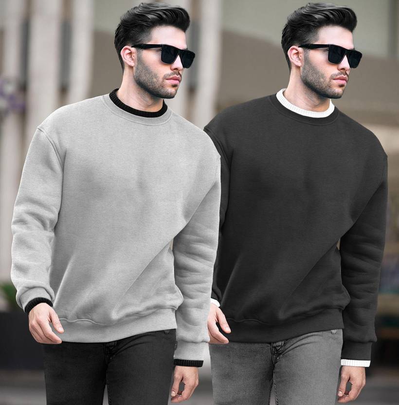 TRIPR Solid Round Neck Casual Men Black, Grey Sweater