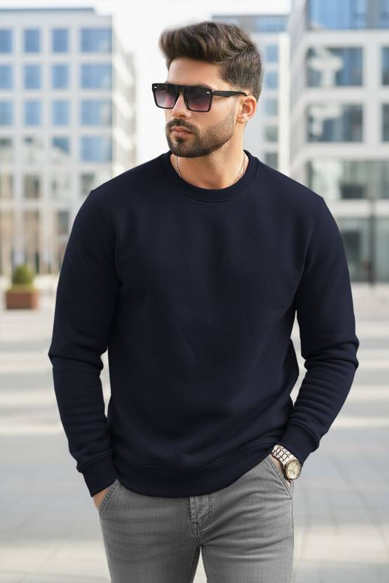 TRIPR Solid Round Neck Casual Men Blue Sweater