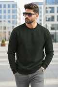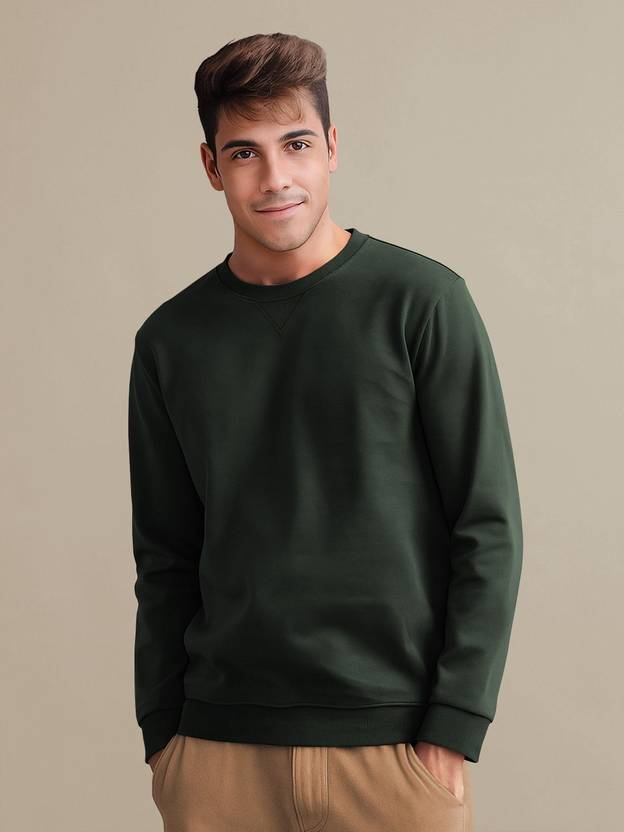 TRIPR Solid Round Neck Casual Men Dark Green Sweater