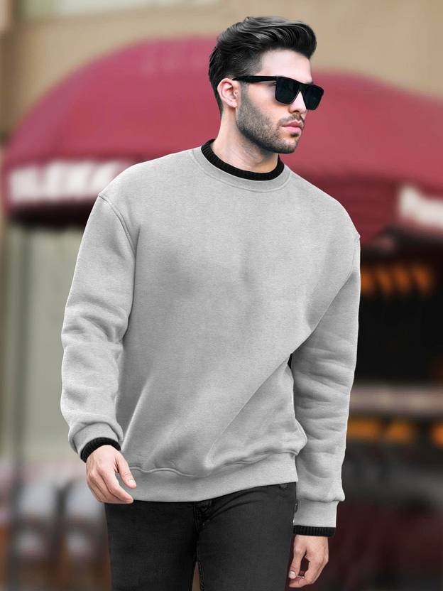 TRIPR Solid Round Neck Casual Men Grey, Black Sweater