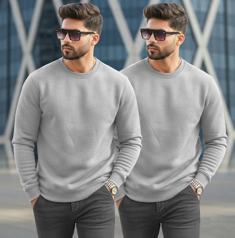 TRIPR Solid Round Neck Casual Men Grey Sweater