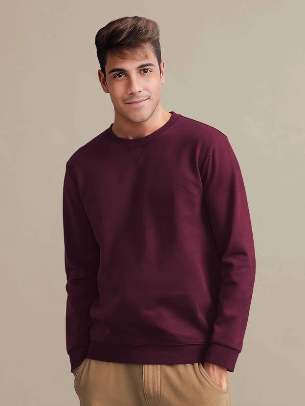 TRIPR Solid Round Neck Casual Men Maroon Sweater