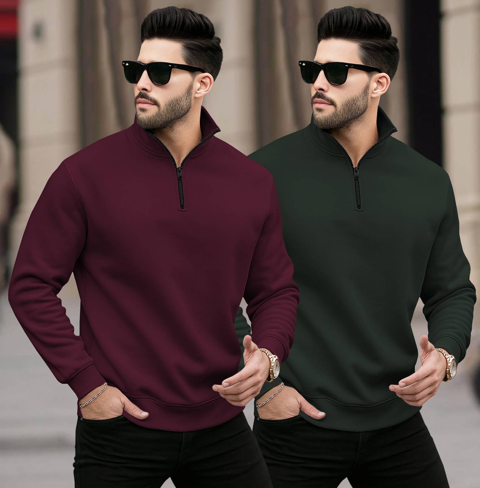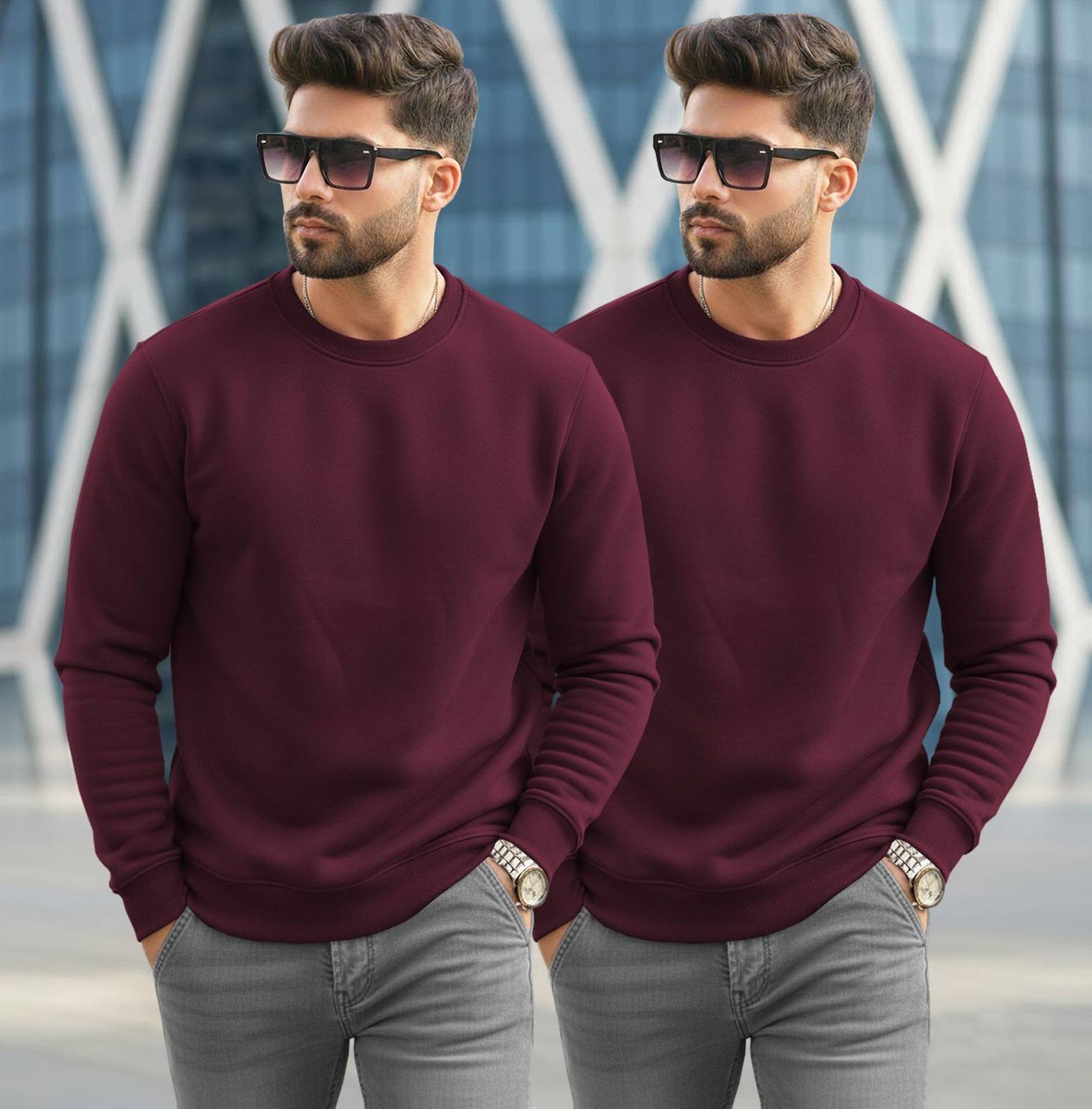 TRIPR Solid Round Neck Casual Men Maroon Sweater
