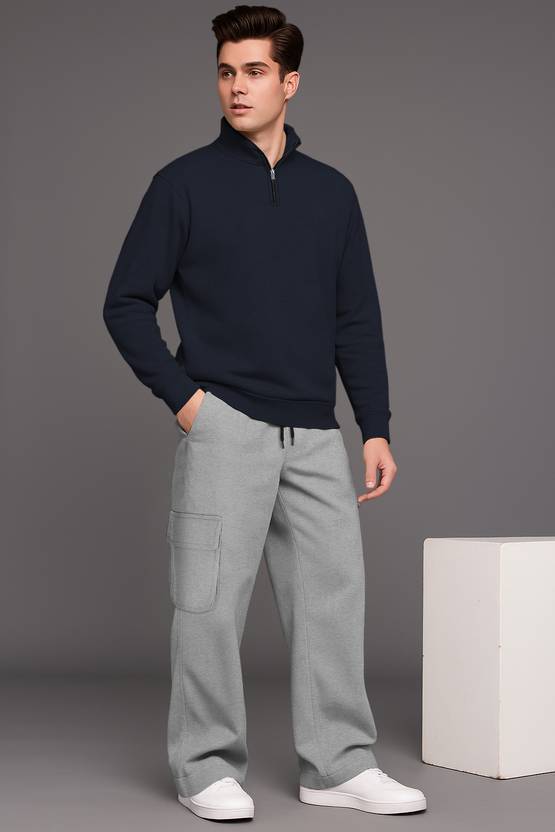 Step up your casual style with this signature look from TRIPR. Featuring a high neck sweatshirt with a sleek front zipper, this piece delivers a perfect mix of comfort and modern edge. Paired with loose-fit cargo pants designed with spacious side pockets, this outfit offers effortless mobility and everyday functionality. Whether you're heading out or lounging in, this TRIPR combo is built for all-day comfort and street-smart appeal.