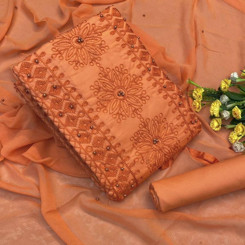 Unstitched Cotton Blend Salwar Suit Material Embroidered