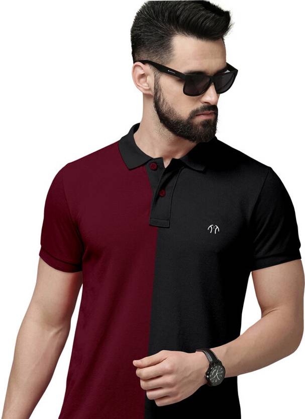 Triptee Colorblock Men Polo Neck Maroon T-Shirt
