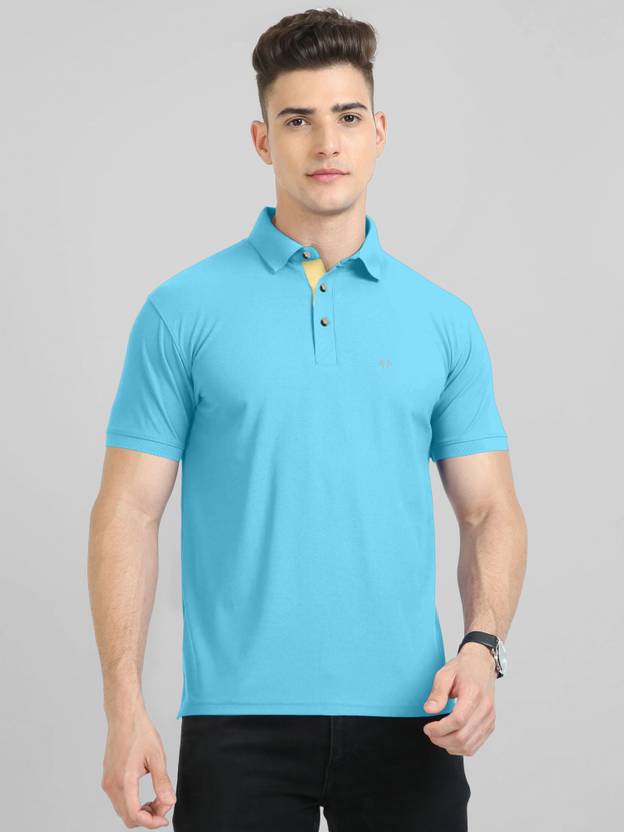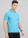 Triptee Solid Men Polo Neck Blue T-Shirt