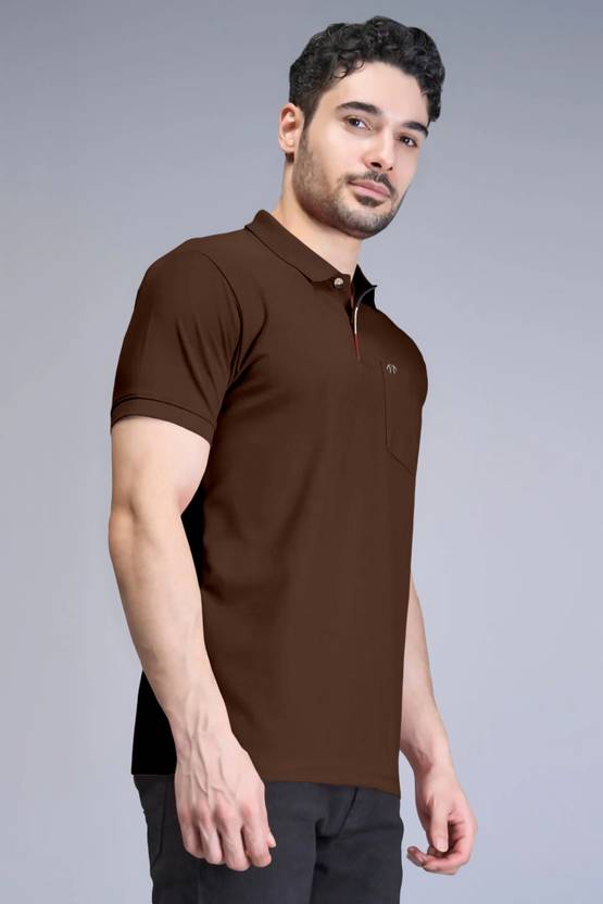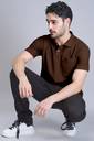 Triptee Men Printed Polo Neck Pure Cotton Brown T-Shirt