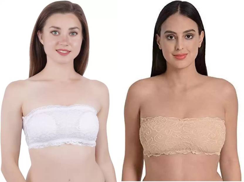 Pack of 2 Women Bandeau/Tube Lightly Padded Bra (White, Multicolor)