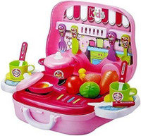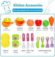 It includes a wide range of pretend kitchen essentials, such as cutlery, cooking utensils, cups, plates, pots, pans, and even basic vegetables. The variety allows your children to mimic real-life cooking and serving experiences, sparking their imagination and creativity. The case itself doubles as a play stove, complete with burners and prep stations, adding an extra layer of fun and functionality.
