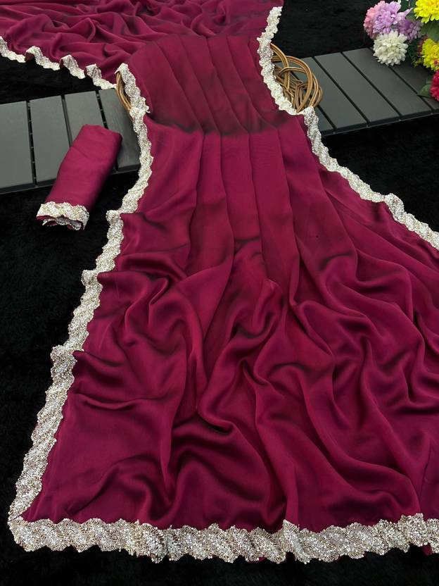 VRISE Solid/Plain Bollywood Silk Blend Saree (Magenta)