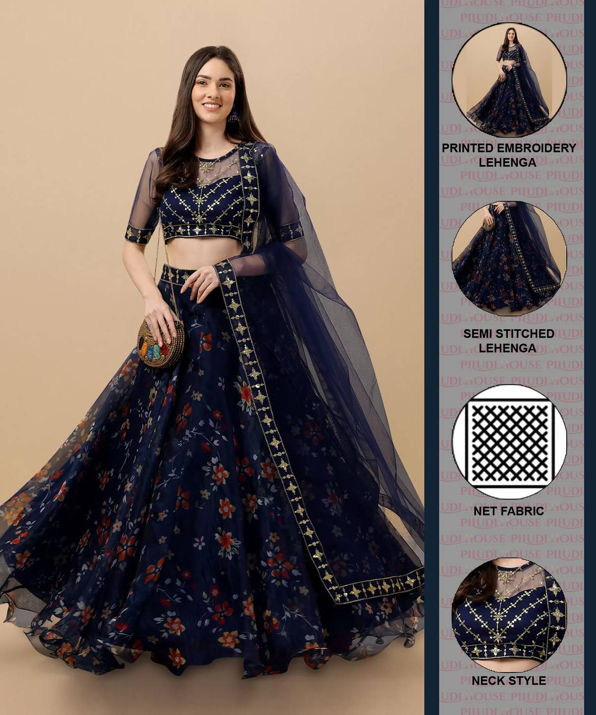 Trivety Printed Semi Stitched Lehenga Choli (Blue)