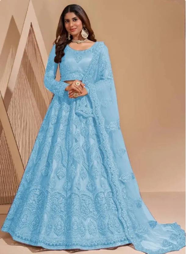 TRIVORA Embroidered Semi Stitched Lehenga Choli  (Light Blue)