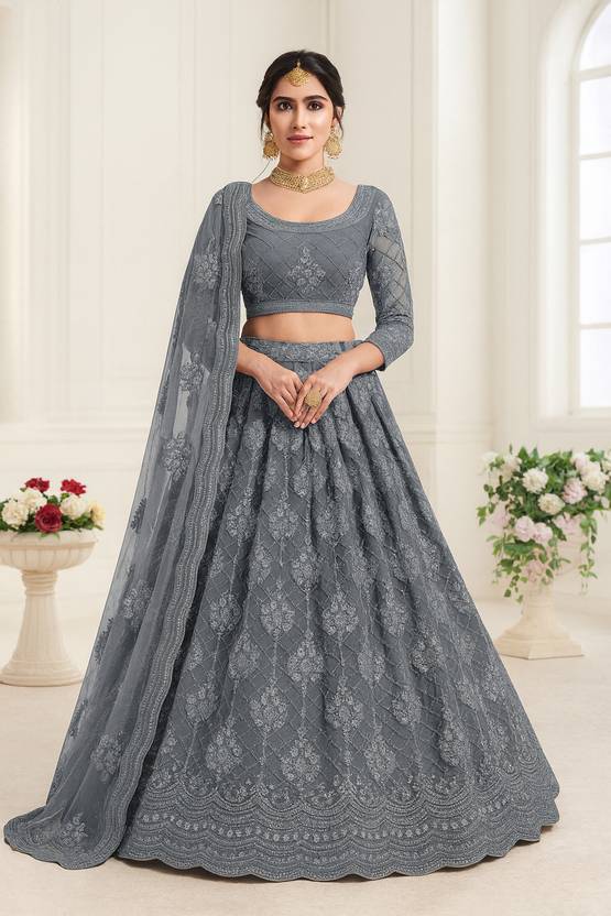 Embroidered Semi Stitched Lehenga Choli (Grey)