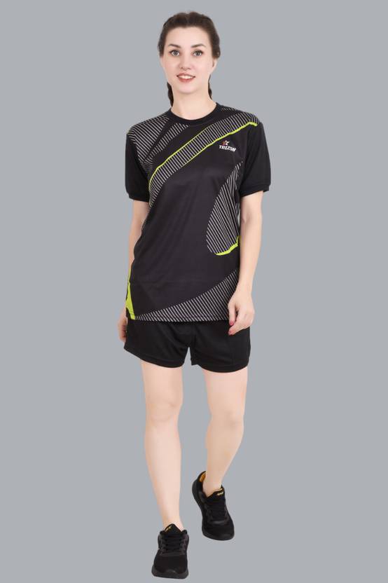 Package Content: 1 Tshirt + 1 Short with Zip Pocket || Kabaddi Kit | Volleyball Kit | Football Kit | Cricket Kit for women and girl | T Shirts for women Kabaddi Dress Jersey Shorts Athletics Yoga Running & Jogging Sports || Sleeve Type: Half Sleeve; Closure Type: Pull On; Pattern Type: Solid; Fit Type: Regular Fit; Collar Style: Round Collar. Flat Seams, Latest Design, Attractive colors, Lightweight and comfortable fit suitable for any Kabaddi or Football Sports training or tournament matches. This fabric is soft, Dry Fast and Breathable which keeps moisture away from your body thus keeps you cool and dry. Superior Quality Micro Polyester fabric which is flexible during Playing Kabadi,workout, exercise or any other sports or outdoor activity. Round Neck Half Sleeve T-Shirt for Sports, Gym, Running, Workout | This is designed as per the latest trends to keep you in sync with high fashion and with Casual wear and other occasion, it will keep you comfortable all day long. Easy Care:- Made from materials that are easy to care for, ensuring minimal effort in maintaining the quality and appearance of the set. women's Half Sleeve Round Neck T Shirt | Sports t-Shirts | t shirts for women, tshirt for women, tshirts women, women t shirt, womens t shirt, printed t shirt, printed tshirt for women, gym tshirt, sports tshirt, tshirt for sport, track suit women, track suit, tracksuit for women, kabaddi kit, women track suit, track suit for grils, gym dress women, womens track suit, t shirts, tshirt for women, tshirt | Kabaddi kit, Printed Sports kit, Gym wear, running wear for Women and Girls | Stay stylish and comfortable with our unisex printed T-shirt and shorts set! this sporty set is perfect for activities like kabaddi, football, volleyball, gym workouts, swimming, running, and more. Made from breathable, quick-dry fabric, it ensures maximum comfort and flexibility. Whether you're on the field or at the gym, this set keeps you looking and feeling your best!