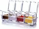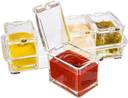 • Crystal Acrylic Seasoning Box Pepper Salt Spice Rack The box contains four detachable plastic containers placed in a tray.