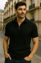 Men Solid Zip Neck Polycotton Black T-Shirt