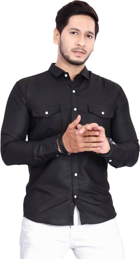Men Regular Fit Solid Spread Collar Casual Shirt