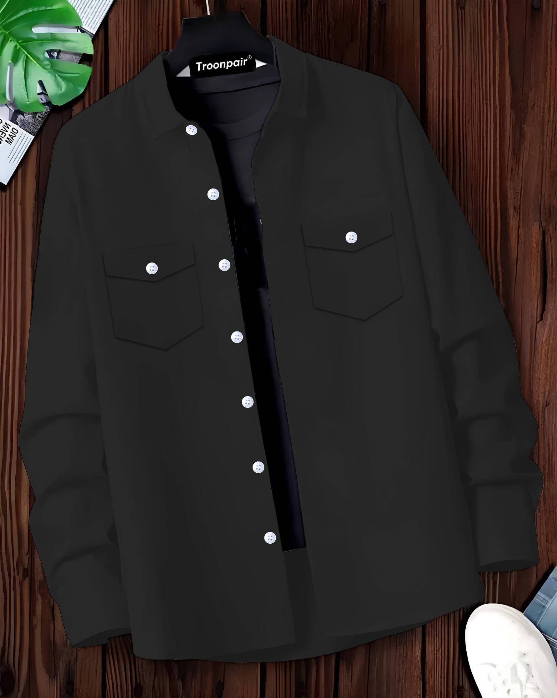 TroonpairΒ Men Regular Fit Solid Spread Collar Casual Shirt