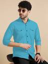 Troonpair Men Solid Casual Light Blue Shirt