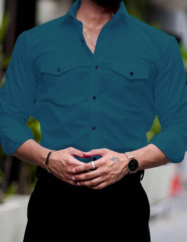 Troonpair Men Solid Casual Dark Green Shirt
