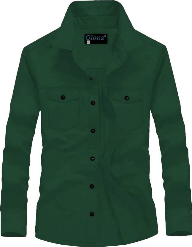 Qlonz Store Men Solid Casual Dark Green Shirt
