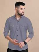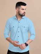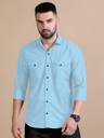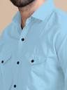 HouseOfCommon Men Solid Casual Light Blue Shirt
