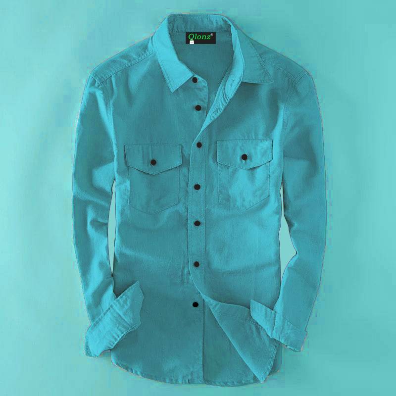 HouseOfCommon Men Solid Casual Dark Blue Shirt