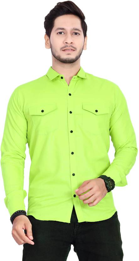 Troonpair Men Solid Casual Light Green Shirt