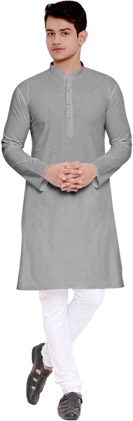 Pack of 2 Men Solid Cotton Blend Straight Kurta (Grey)
