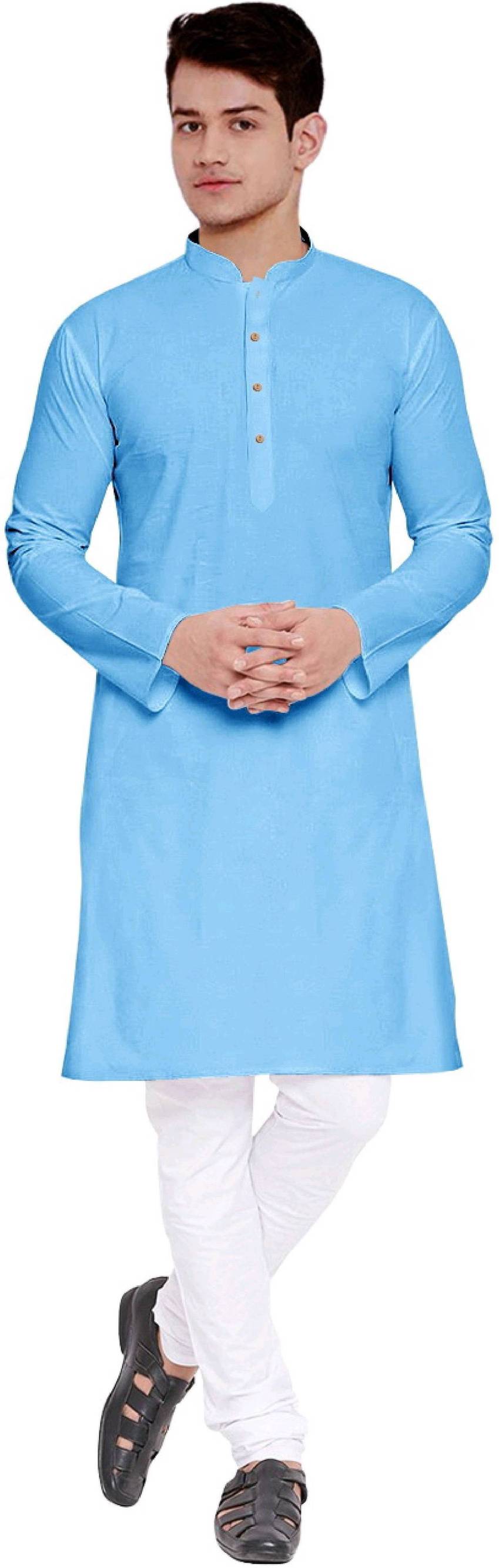 Pack of 2 Men Solid Cotton Blend Straight Kurta (Light Blue)