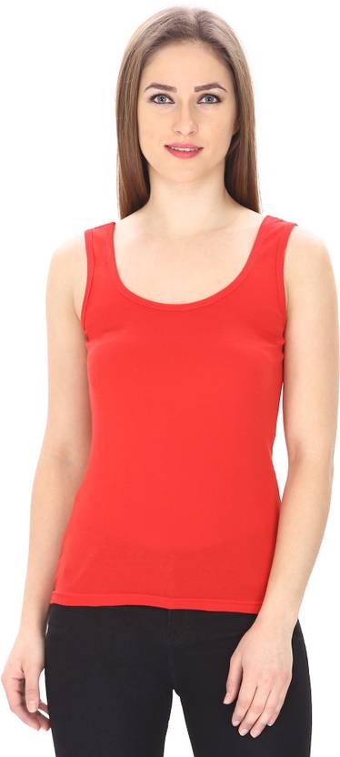 Trudam Casual No Sleeve Solid Women Red Top