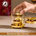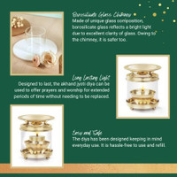 This Akhand diya is carefully crafted from high-quality brass and borosilicate glass, combining durability with elegance. The brass base and diya are sturdy, resistant to wear, and provide a traditional look that adds a touch of sophistication to any space. The borosilicate glass covering is designed to be heat-resistant and offers a clear view of the flame inside, allowing you to enjoy the soft, calming glow.