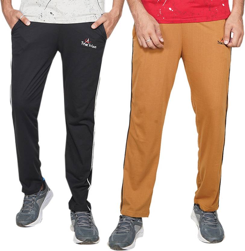 True ManΒ Pack of 2 Men Solid Black, Brown Track Pants