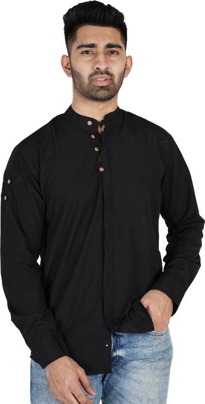 Men Regular Fit Solid Mandarin Collar Casual Shirt