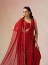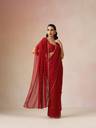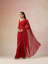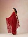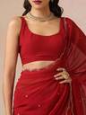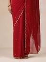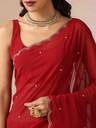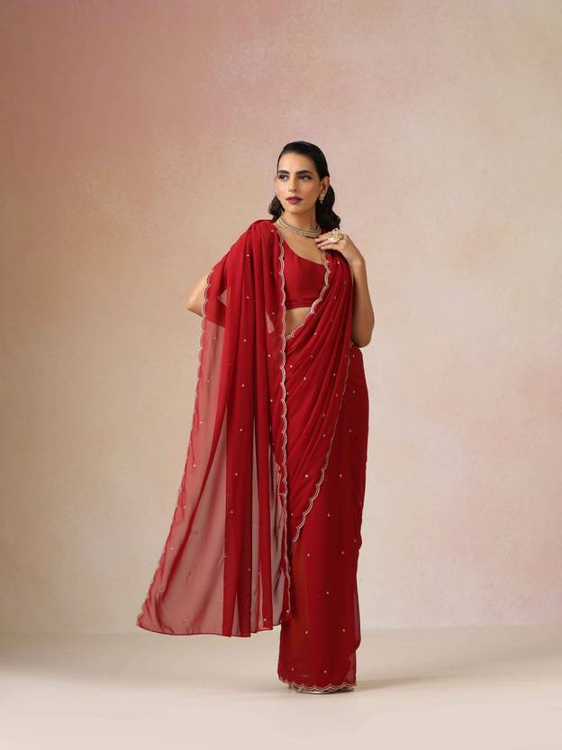 Make a graceful statement in this Maroon Scallop Embroidered Saree, designed to elevate your festive or evening wardrobe. Crafted in soft georgette, this saree features delicate scallop detailing along the edges and elegant embroidery throughout for a refined yet striking look.