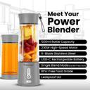 Truesnap QUIX 500ml Portable Blender | USB-C Rechargeable | 230 W Mixer Blender (TS-PB-A7G | 1 Jar | Grey)