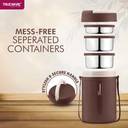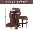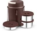 Trueware Present Grub 2 Insulated Hot and Cold Lunch Box With 2 SS Container 300 ML Each & 1 SS Container 200ML. Elegent and functional Design. Come with the belt and Stulus & Secure Handle, Keep Food Hot and fresh many hours. Mess Free Seperated Containers. 100% Food Grade Material. BPA Free, Airtight, Hot and fresh many hours, High Quality Stainless steel used creak proof. Grub 2 Tiffin Lunch Box set is an ideal choice for carrying your meals to work and keeping them hot for a long time. While most home- cooked meals grow cold and lose their taste by lunchtime, the double-walled insulation system of this set in the heat. The included containers let you carry multiple items of your choice and prevent them from leakage. The secure handle aids in portability and makes it easy for you to carry this lunch box anywhere.