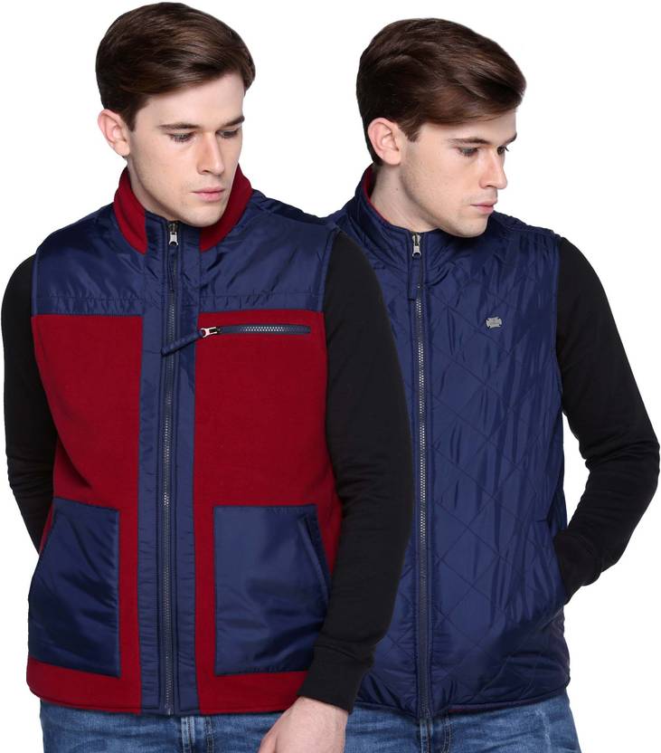 Trufit Solid Sleeveless Reversible Men's Maroon-Navy High Neck Polyester Blend Jacket