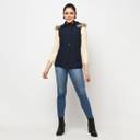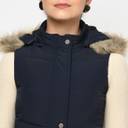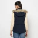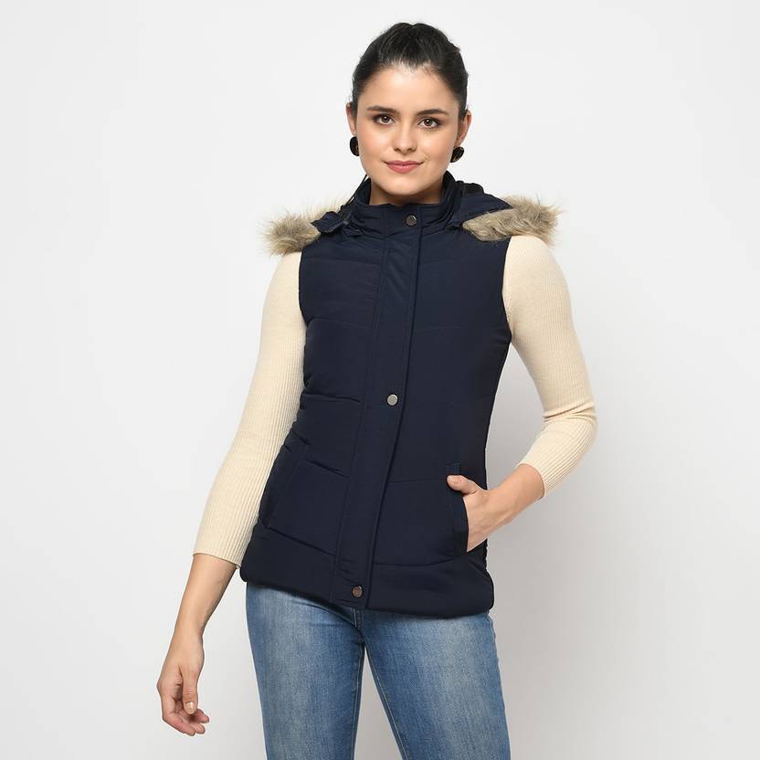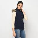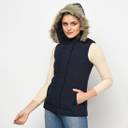 Trufit Women's Navy Self Design Polyester Sleeveless Quilted Jacket With Removable Hood Suitable for Mild Winter