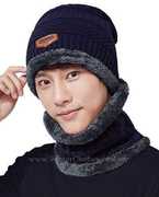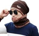 Fur Wool Unisex Beanie Cap with Neck Warmer Set Winter