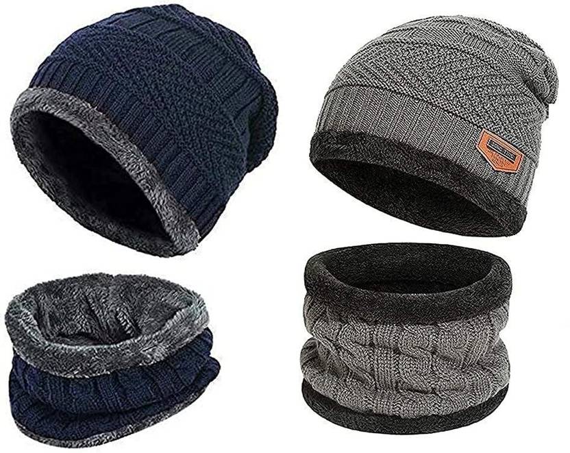 TruFlair Self Design Beanie Cap (Pack of 4)