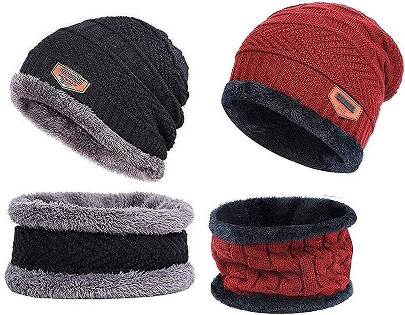 Combo winter woolen cap neck scarf set ( Fur Inside ) winter cap for men