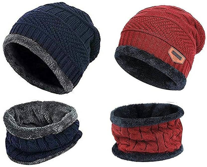 Men's & Women's Snow Proof,Inside Fur, Warm Woolen Cap with Neck Muffler/Neck Warmer/Scarf for Winters