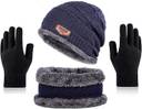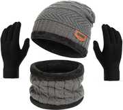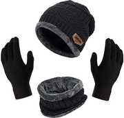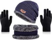 Winter Knit Beanie Cap Hat Neck Warmer Scarf and Woolen Gloves Set