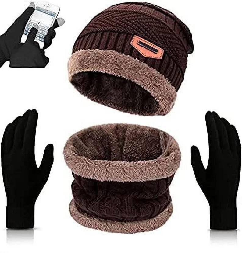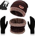 Men's Women's Winter Woolen Beanie Cap,Scarf and Touch Screen Gloves Set