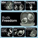 Step into a world of superior sound quality and unmatched comfort with the Truke Buds Freedom OWS. Designed to cater to the needs of audiophiles, fitness enthusiasts, and everyday users alike, these cutting-edge wireless earbuds combine advanced technology with thoughtful design to deliver an exceptional audio experience. Enhance your calls with crystal-clear voice transmission. The Quad-Mic PureVoice Environmental Noise Cancellation (ENC) technology ensures that your voice is isolated from ambient noise, allowing you to communicate clearly in any environment. Whether you're in a bustling city or a noisy office, your voice will come through with impeccable clarity. Enjoy the freedom of extended battery life. The Truke Buds Freedom OWS provide up to 60 hours of total playtime, allowing you to immerse yourself in your music, podcasts, and calls without the constant need for recharging. Perfect for long journeys, intense workout sessions, or all-day listening. Experience audio like never before with 16mm large Beryllium speaker drivers. These high-performance drivers deliver rich, detailed sound across all frequencies, from deep, resonant bass to crisp, clear highs. Paired with HiFi Digital Signal Processing (DSP), every note, beat, and word is rendered with stunning clarity and precision. Designed for all-day wear, the Truke Buds Freedom OWS feature an ergonomic design that ensures a secure and comfortable fit. The lightweight construction and soft silicone tips conform to the shape of your ears, providing a snug fit that stays comfortable even during extended listening sessions. Say goodbye to ear fatigue and hello to unparalleled comfort. The HiFi DSP technology in the Truke Buds Freedom OWS enhances your listening experience by optimizing audio output for maximum clarity and fidelity. Enjoy your favorite music and media with the perfect balance of sound, bringing every detail to life with precision and depth. Prioritizing your comfort, the Truke Buds Freedom OWS are engineered to minimize ear fatigue. The ergonomic design distributes pressure evenly, ensuring that you can wear the earbuds for long periods without discomfort. Experience true freedom from ear pain and enjoy your audio content without distraction. Stay aware and stay safe with the Truke Buds Freedom OWS. Perfect for outdoor activities like jogging, cycling, and walking, these earbuds feature an open-ear design that allows you to hear ambient sounds. Stay alert to your surroundings while enjoying your favorite tunes, ensuring your safety during outdoor activities. Built to withstand the elements, the Truke Buds Freedom OWS come with an IPX5 water resistance rating. Whether you're sweating it out at the gym or caught in a sudden downpour, these earbuds can handle it. Durable and reliable, they are designed to keep up with your active lifestyle. Elevate your audio experience with the Truke Buds Freedom OWS. Whether you're enjoying music, taking calls, or staying active, these earbuds offer the perfect blend of advanced technology, superior sound quality, and exceptional comfort. Discover the freedom of premium audio with Truke Buds Freedom OWS.